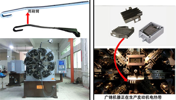 所以呢,我公司一定會根據(jù)客戶的產(chǎn)品要求和客戶本身對機器的要求, 推薦合適的機器.下圖為廣錦彈簧機生產(chǎn)的2款經(jīng)典線成型產(chǎn)品: 雨刷臂,發(fā)動機電熱帶