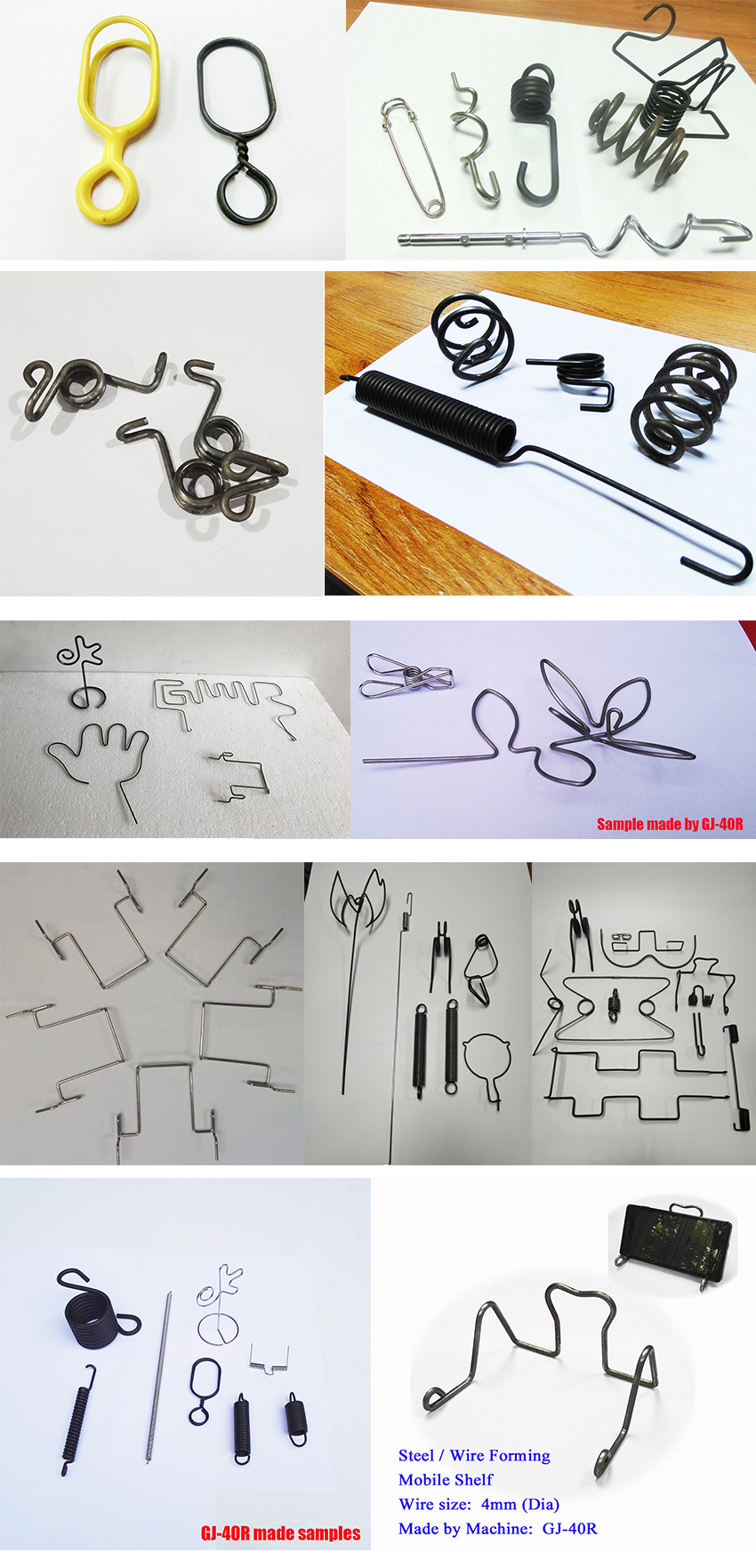 獨特的無凸輪和無搖臂設(shè)計,由多組伺服馬達獨立控制,可以生產(chǎn)各種各樣異型彈簧、雙扭簧、汽車配件、汽車彈簧、家具五金、掛件、廚衛(wèi)五金、娛樂健身器材、雙扭簧、篇簧(發(fā)條簧)及各種線成型等。精密準備、調(diào)機快速、穩(wěn)定可靠。